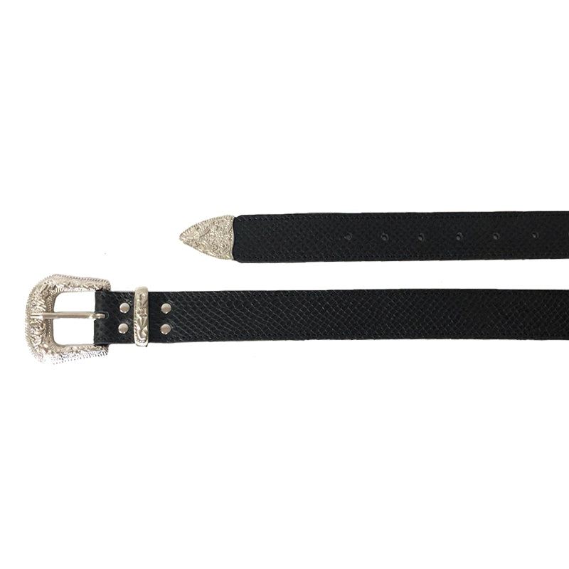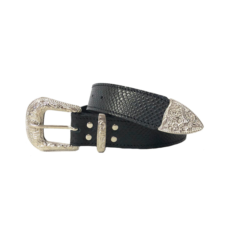 Cinturón de cuero texturado negro, hecho a mano en Chile