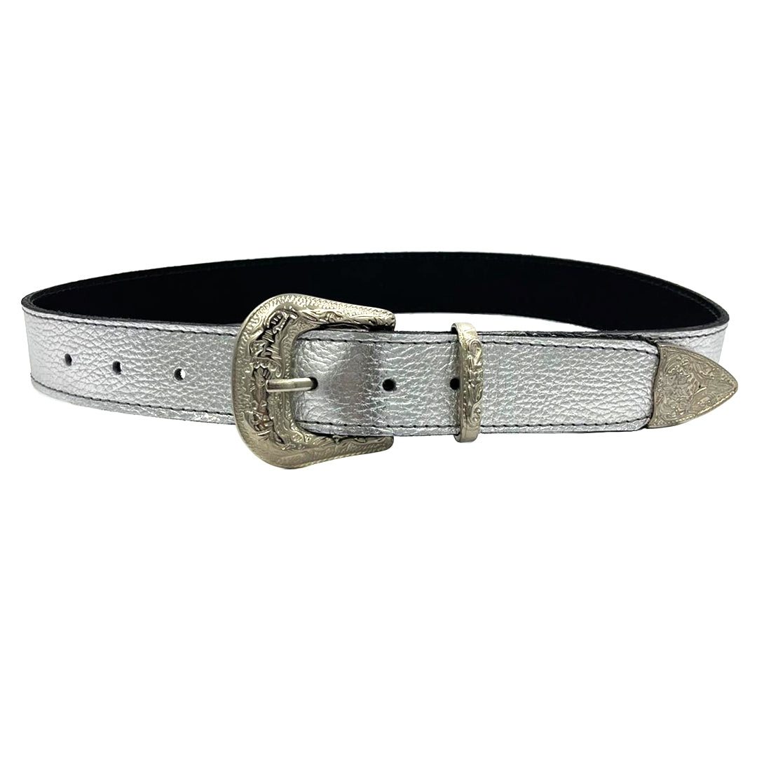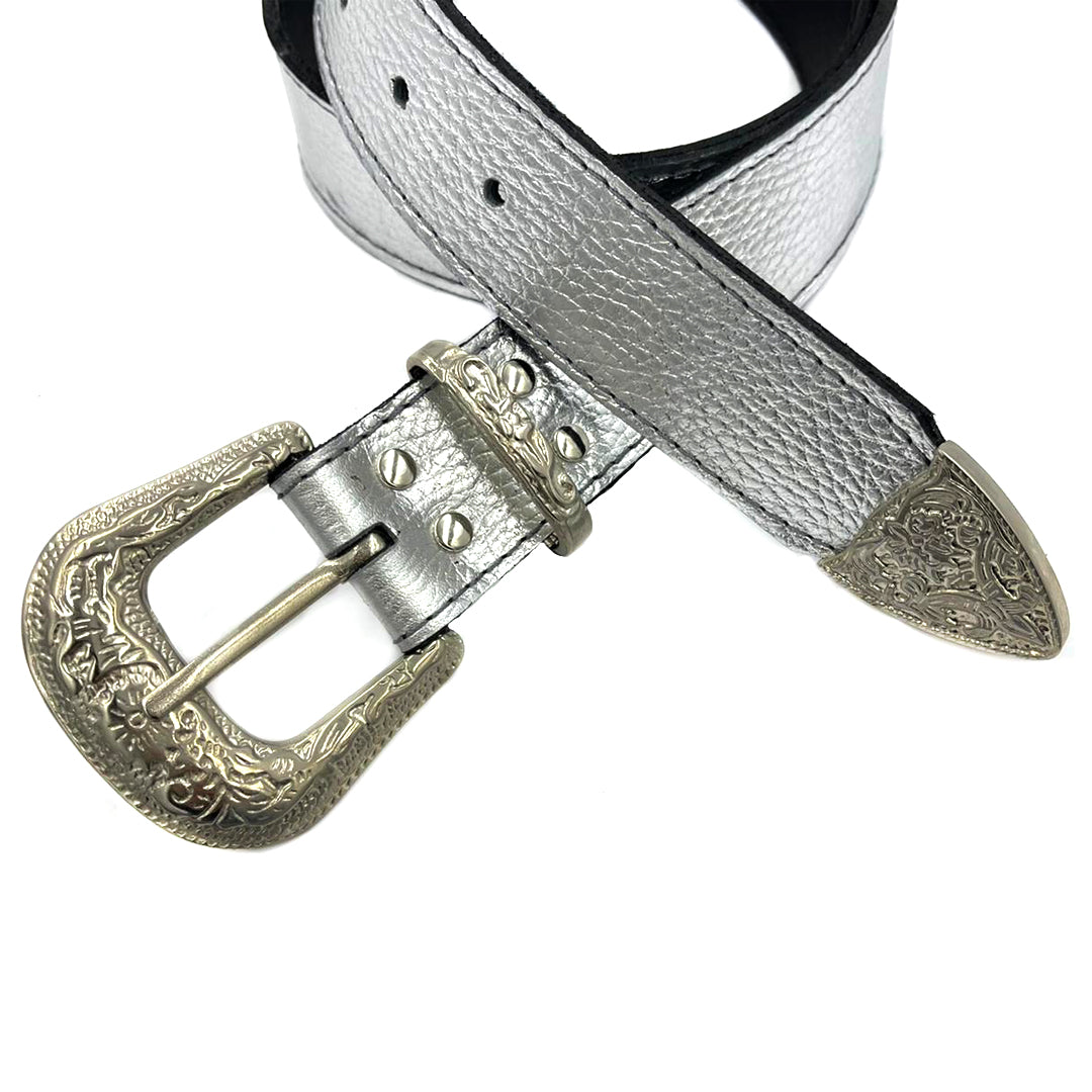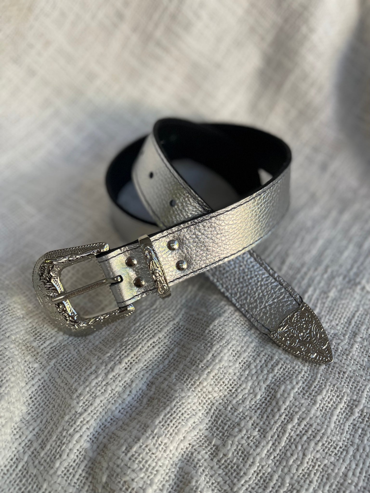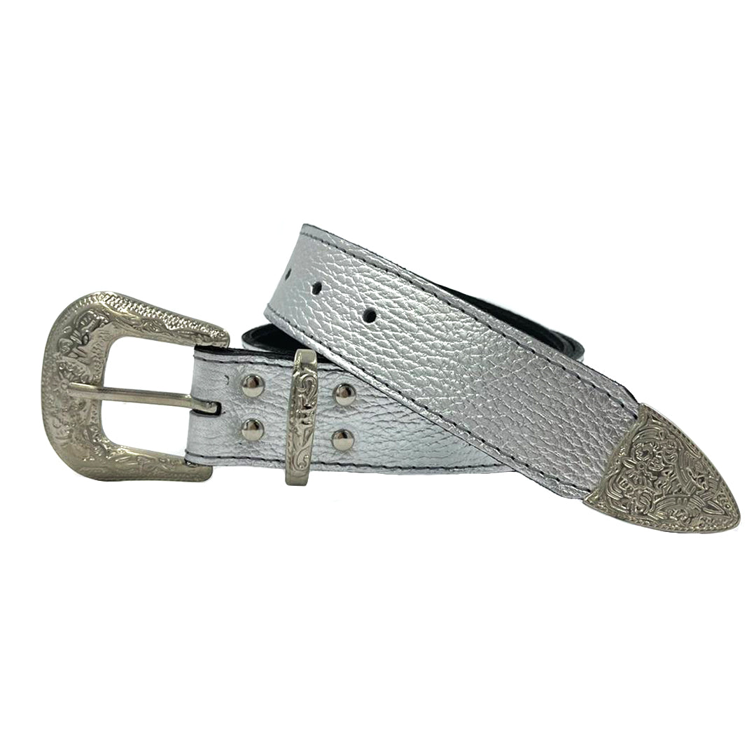 Cinturón de cuero Plateado, hecho a mano en Chile